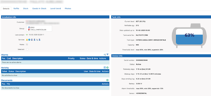 • Accurato controllo remoto del livello serbatoio